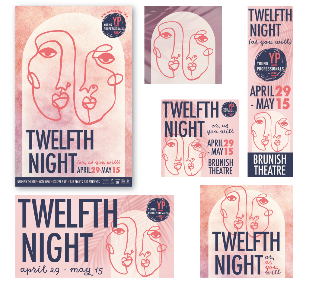 I designed the branding for this show to be light and airy, and a little mysterious. I created a poster, postcard, playbill, signs and more printed assets for this show. I also created a set of digital display ads and other digital collateral.